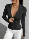 Chaqueta de yoga estilo Y2K con cremallera - Diseño ajustado y mangas largas con abertura para el pulgar