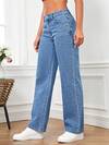 Vaqueros de cintura alta y pierna ancha para mujer, corte informal largo con bolsillos, cierre de botón y cremallera.