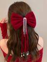 Nuevo accesorio de moda para el cabello con clip de gran lazo de terciopelo con borlas y strass, pasador de primavera con lazo doble y perlas falsas, regalo de Navidad y Año Nuevo para mujeres, pinzas para el cabello, pasadores, accesorios para el cabello, accesorios para fiestas