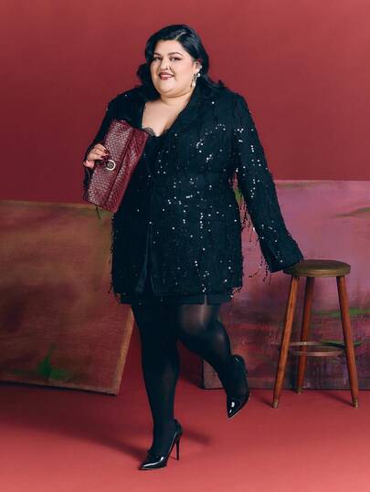 SHEIN BAE Chaqueta de blazer ajustada con perlas negras y flecos para mujer de talla grande, para fiesta de Halloween, otoño/invierno - Negro - Añade 5