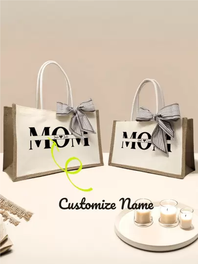 Bolsa de tela personalizada con pañuelo para mamá con nombres de niños, regalo para la mamá, bolsa de yute personalizada con nombres de niños, bolsa de arpillera personalizada para mamá, bolsa de tela para mamá, regalo para mamá, regalo del Día de la Madre y Navidad - Multicolor - Añade 2