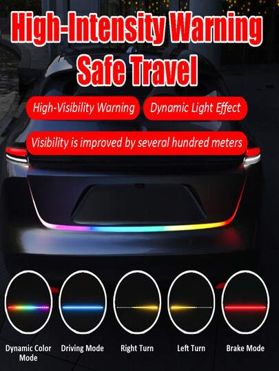 1,2M/1,5M Tira LED dinámica y colorida de luz de freno y señal de giro adicional para el maletero y la luz de marcha atrás del automóvil - 1 pieza - Añade 1