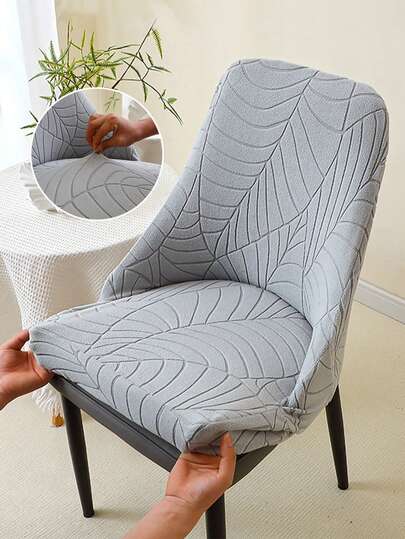 1/2 piezas Funda de silla de ratán con estampado de hojas, funda de asiento de unicolor antideslizante, funda elástica para silla de comedor para cocina, hotel, banquete - Gris Claro - Añade 1