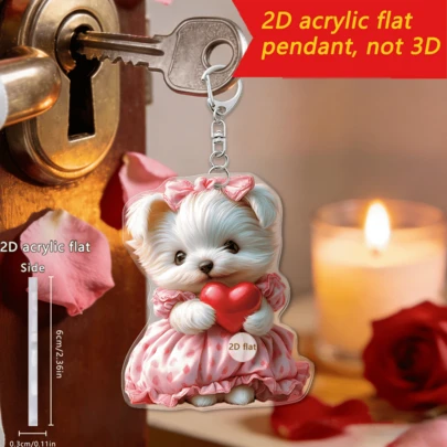 1/6 piezas Lindo llavero de gato o perro de dibujos animados, decoración colgante plana de acrílico 2D con rosas y corazones, oso y conejo. Accesorio decorativo para espejo retrovisor de coche, bolso y llavero. Regalo del Día de San Valentín para amantes de las mascotas y decoración del hogar - Llavero multicolor en forma de D - Añade 8