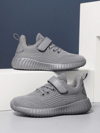 1 par de zapatillas deportivas respirables de malla negra para niños, zapatos deportivos para niños y niñas con cierre de gancho y bucle