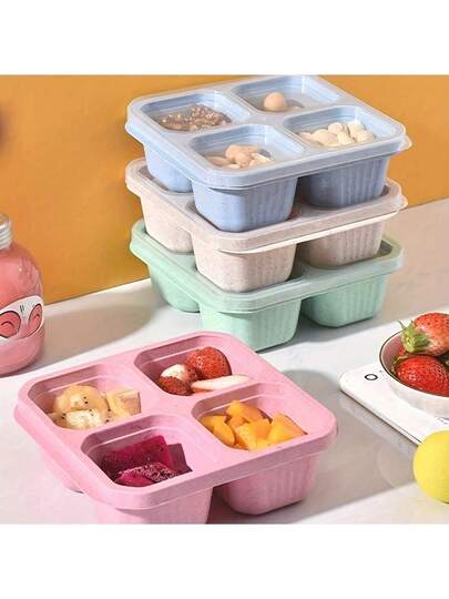 1 Pieza Caja Bento cuadrada de 4 compartimentos, Caja de almuerzo con divisiones para camping al aire libre - Multicolor - Añade 4