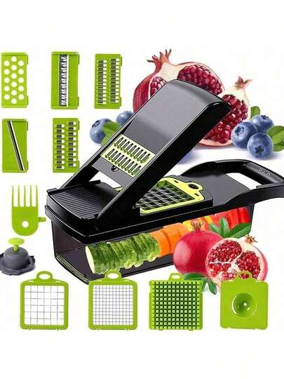 1 Picador de cebolla, máquina de cortar multifuncional, herramienta de procesamiento de ingredientes, picador de cebolla con cesta de drenaje, picador de zanahoria y ajo con recipiente, utensilios de cocina, accesorios de cocina, adecuado para uso doméstico/restaurante para un corte rápido - Blanco - Añade 1