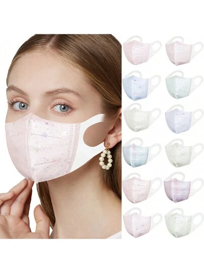 Juego de 10 piezas de máscaras de moda universal con patrón de encaje, protección solar, a prueba de polvo y transpirables, para las cuatro estaciones - Multicolor - Añade 12
