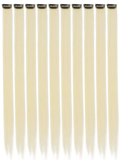 10 piezas Extensión del pelo con clip largo recto sintético - Beis - Añade 1