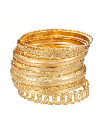 RINTOLER Set de 10 piezas Brazalete tejido geométrico hueco único - ZJ12485-10 piezas de pulseras de oro - Añade 1
