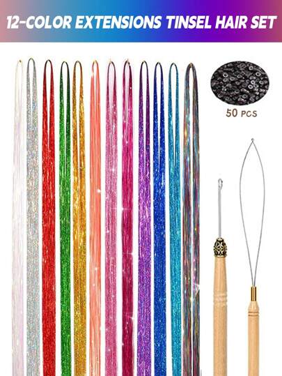 Extensiones de cabello con lentejuelas de 12 colores, ideales para festivales de música - Multicolor - Añade 2