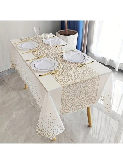 Mantel desechable rectangular blanco de 137x274cm con estampado de puntos en onda para fiesta, cumpleaños, graduación, restaurante, boda y decoración - Blanco - Añade 1