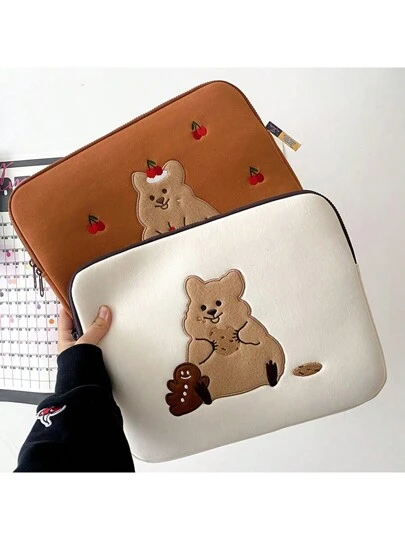1 Pieza Funda De Laptop Tipo Tablet Ins Con Patrón De Oso Lindo De Galleta De Castañas, Antidesgaste Y Absorción De Impactos - Beis - Añade 2