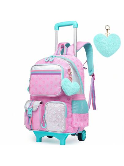 1 pieza Mochila trolley multifuncional rosa con diseño estampado de pentágono, bolso de playa para accesorios esenciales de verano, vacaciones y organización de viaje, bolsa de hospital - Rosa - Añade 6