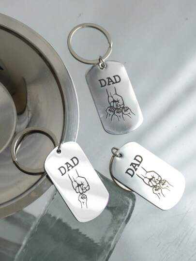 1 pieza Llavero de acero inoxidable creativo para papá, regalo para el Día del Padre, llavero de familia personalizado - Multicolor - Añade 1