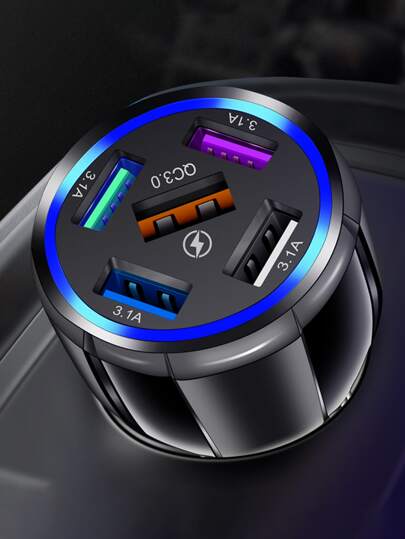 1 pieza Cargador de coche multifuncional - Negro - Añade 5