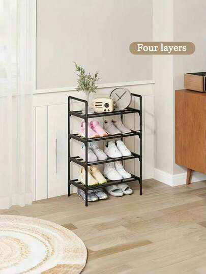 1 pieza [2 pares de zapatos por capa] Estantería apilable de 4 capas para almacenamiento de zapatos - Estantería para zapatos autosoportada de plástico duradero y tubería de metal - Organizador de zapatos de pie de metal - Negro - Añade 4