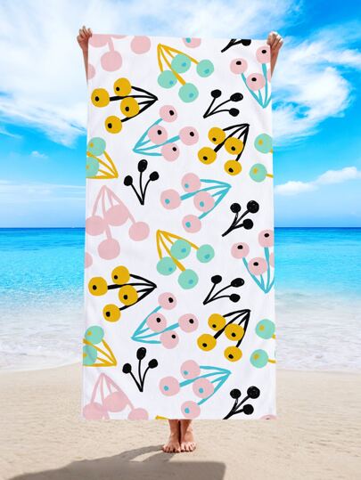 1 pieza Toalla de playa con estampado de dibujos animados - Blanco - Añade 2