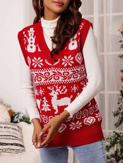 SHEIN Clasi 1 pieza Chaleco de punto con patrón de Navidad - Rojo - Añade 4