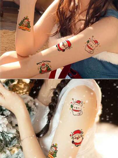 1 Pieza Pegatina Temporal De Tatuaje Colorida Impermeable Y Antitranspirante Con Patrón De Santa Claus Para Brazos Y Hombros De Chicas Lindas - Multicolor - Añade 4