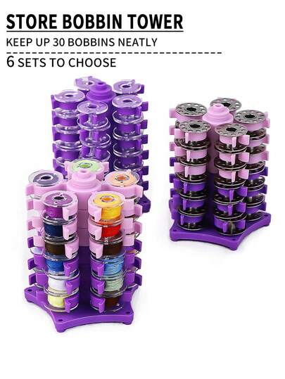 1 pieza Caja de almacenamiento de torre de carrete creativa y práctica, o conjunto que consta de torre de carrete y carretes, puede almacenar carretes de plástico o metal regulares para máquina de coser, portacarretes multifuncional, accesorios de costura - Multicolor - Añade 6