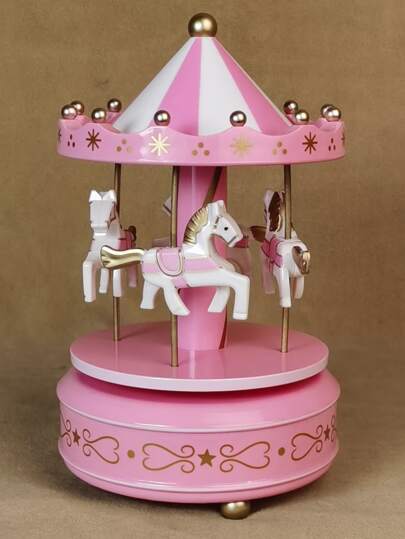 Niños 1 pieza Caja creativo de plástico música dibujos animados lindo carrusel en forma de para niños - Rosa - Añade 1