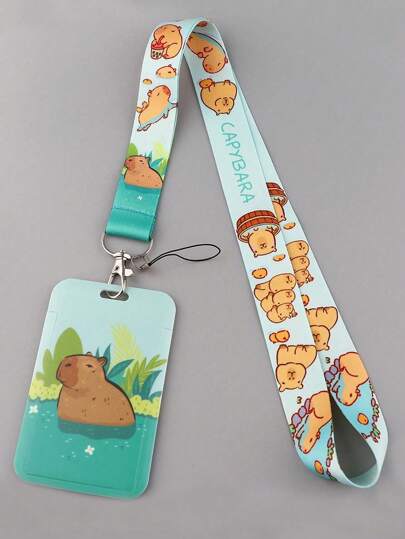 1 pieza Titular de tarjeta con cinta para el cuello de conejillo de indias lindo, accesorio de llavero con carcasa rígida para tarjeta de campus e identificación - Multicolor - Añade 5