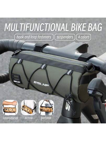 1 pieza Bolsa multifunción de gran capacidad para manillar frontal de bicicleta tipo bandolera ESLNF - Multicolor - Añade 4