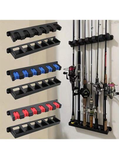1 pieza Soporte de pared para cañas de pescar de ABS negro de fácil instalación - Agarre de espuma de alta densidad, almacenamiento seguro para garaje y equipo deportivo, diseño de múltiples ranuras para varias cañas, soportes para cañas de pescar - Multicolor - Añade 5
