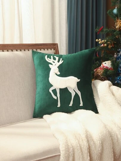 1 pieza Funda de cojín sin relleno alce con bordado - Verde - Añade 5