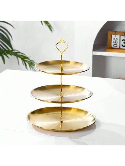 1 pieza Bandeja para dim sum, fuente de frutas o postre con estilo europeo de lujo, sencilla, de acero inoxidable, para exhibición y almacenamiento en el hogar y sala de estar - Multicolor - Añade 1