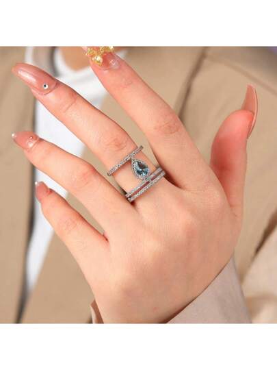 1 pieza Anillo con decoración de cristal de moda y elegante, de varios niveles - Plateado - Añade 1