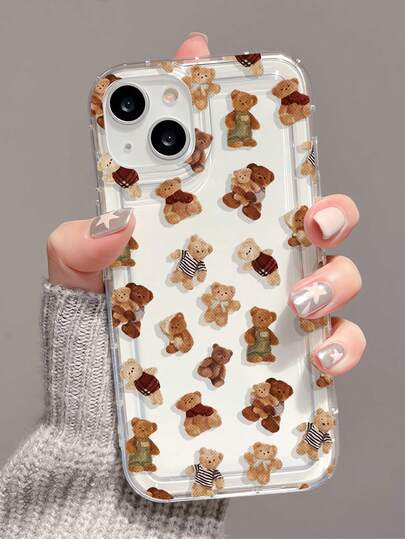1 pieza Funda de teléfono transparente de TPU con absorción de impactos y patrón estético con gráfico de oso personalizado, compatible con iPhone 16/16Pro/16Plus/15/15ProMax/15Pro/11/12/13/14ProMax/12Mini/13Mini/11Pro/11ProMax/12Pro/12ProMax/13Pro/13ProMax/14Pro/14ProMax, funda suave de alta gama - Multicolor - Añade 1