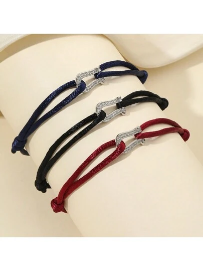 1 pieza Brazalete metálico ajustable con piedras de fantasía simple y de moda, amuleto de la suerte colorido para uso diario por mujeres - Correa de mano - Añade 3