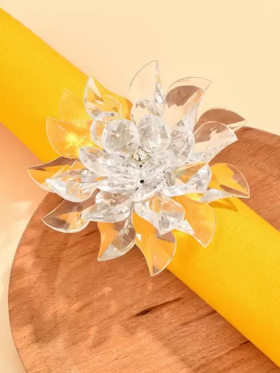 1 pieza Anillo de servilleta con diseño de flor - Plateado - Añade 2