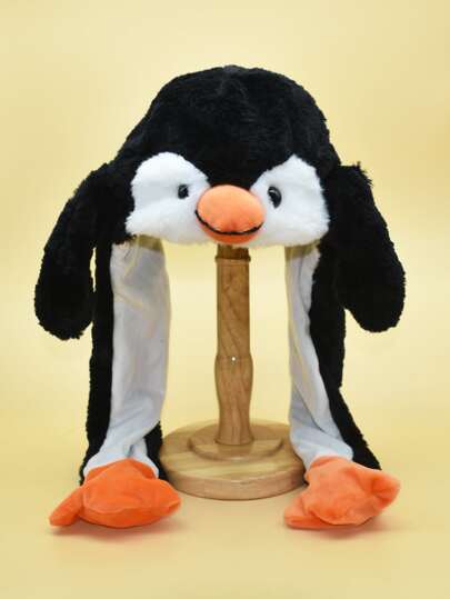 Gorro Móvil Con Orejas De Pingüino De Dibujos Animados Divertidos Para Niños Grandes 1 Pieza - Blanco y Negro - Añade 3