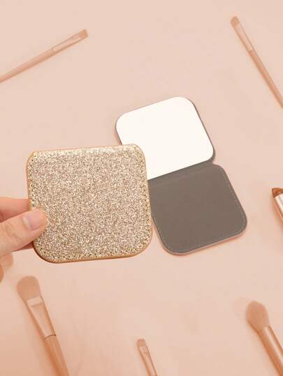 Espejo de maquillaje plegable, 1 pieza Rectángulo con purpurina Espejo cosmético compacto de una cara, Espejo de viaje portátil para mujeres y niñas, Regalo para mujeres Mamá Esposa Hermana Adolescente Amiga - Dorado - Añade 1