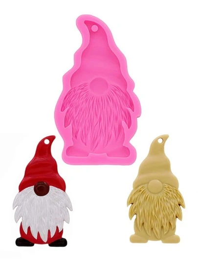 1 pieza Molde de silicona de Santa Claus con forma de duende para hacer llaveros, accesorios de joyería, para bolsas, colgantes de aromaterapia y mucho talla grande. - Rosa - Añade 3