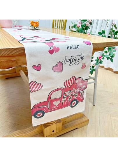 1 pieza Camino de mesa con estampado de rosa en forma de corazón y animal, decoración de mesa de comedor rectangular de lino minimalista moderna, adecuado para el Día de San Valentín, reuniones y uso doméstico - Multicolor - Añade 11