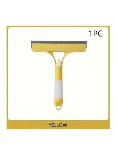 1 pieza Herramienta de limpieza de vidrio multifuncional para el hogar, 3 en 1 con espejo y botella de spray de vidrio, cepillo de doble cara y raspador - Amarillo - Añade 1