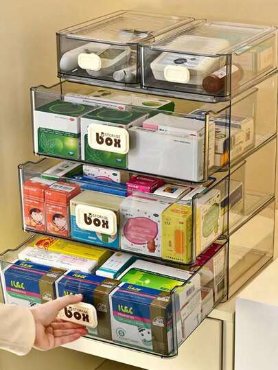 1 Pieza Caja De Almacenamiento De Medicinas De Gran Capacidad Con Cajones Para Hogar, Contenedor Organizador De Medicamentos Transparente - transparente - Añade 1