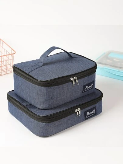 1 Pieza Bolsa Grande De Almuerzo Cuadrada De Mezclilla De Gran Capacidad - Azul Marino - Añade 2