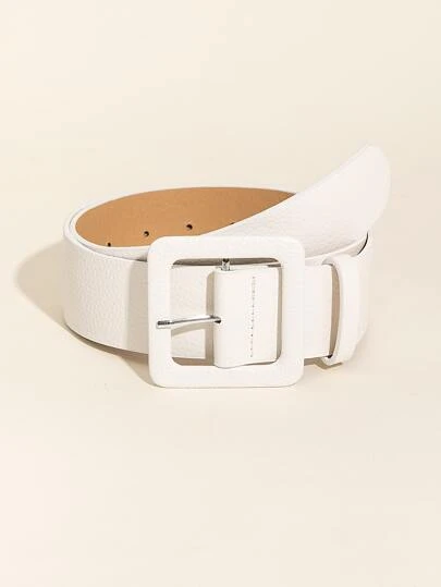 1 pieza Cinturón con hebilla cuadrada con relieve de litchi, para verano, escuela, otoño, Halloween - Blanco - Añade 1