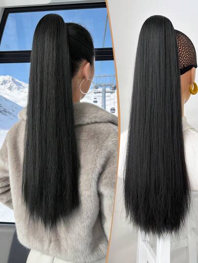 Extensiones de cabello de cola de caballo sintéticas rectas y largas de 26 pulgadas, estilo clip-in, resistentes al calor, para mujeres - Negro - Añade 1