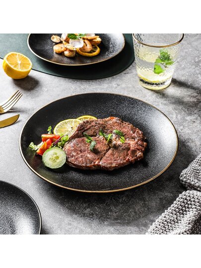 1 pieza Plato mate negro cerámico bife para casa - Negro - Añade 1
