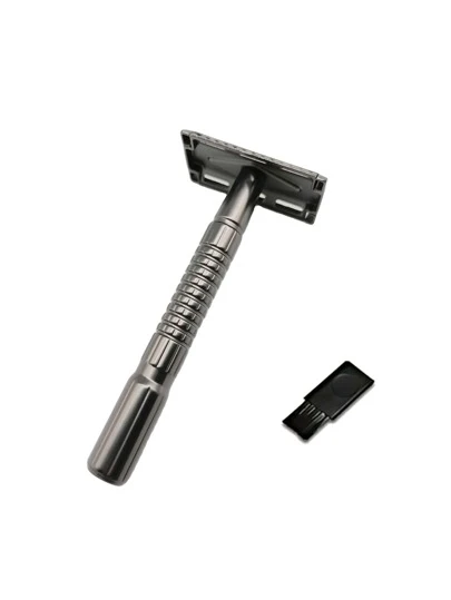 1 pieza Hombres de acero inoxidable Cuchilla de afeitar & 1 pieza Cepillo de limpieza - Negro - Añade 2