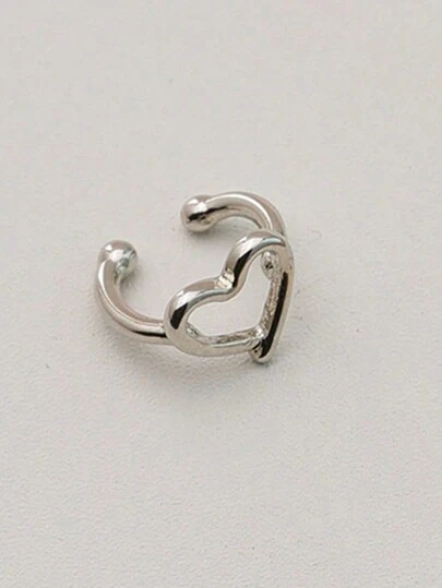 1 Pieza Pinza Para Oreja Con Forma De Corazón Metálico - Plateado - Añade 1