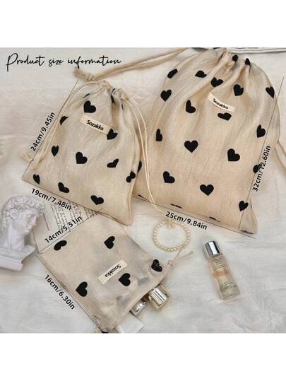1 pieza Bolsa de almacenamiento con cordón mini, con patrón de corazón negro, organizador de tela para artículos varios y objetos pequeños, bolsa de aseo portátil, diseño plegable ligero, bolsa de maquillaje, esencial de viaje - Champán - Añade 5