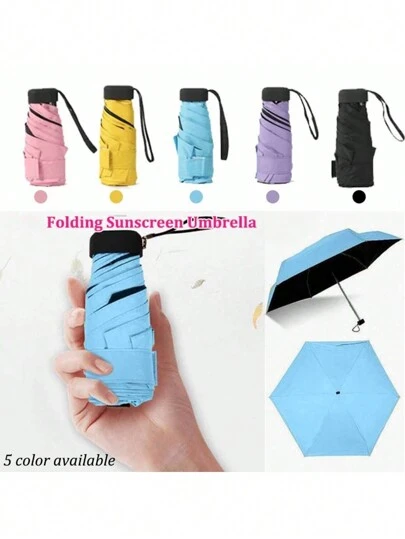 1 Pieza Mini Paraguas De Bolsillo Para Sol Y Lluvia Plegable Ligero Portátil Resistente Al Viento 5 Pliegues - Amarillo - Añade 6