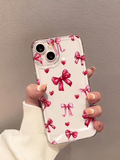 1 pieza Funda de teléfono suave y transparente con patrón de corazón con lazo rosa minimalista y personalizado, antideslizante, a prueba de caídas, antiamarillamiento, ligera y de cobertura completa, compatible con teléfonos Apple - Multicolor - Añade 1